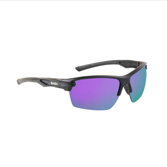 SASA Predator Matte Black Frame Purple Revo Lens Sports Sunglasses