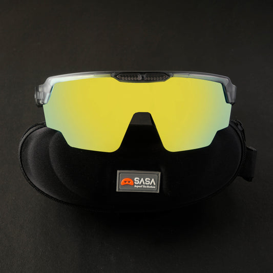 SASA Raptor Translucent Grey Frame Yellow Revo Lens Sports Sunglasses