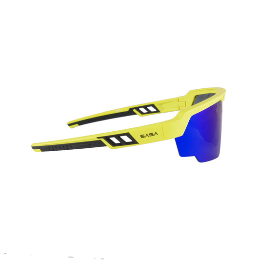SASA Raptor Neon Yellow Frame Blue Revo Lens Sports Sunglasses
