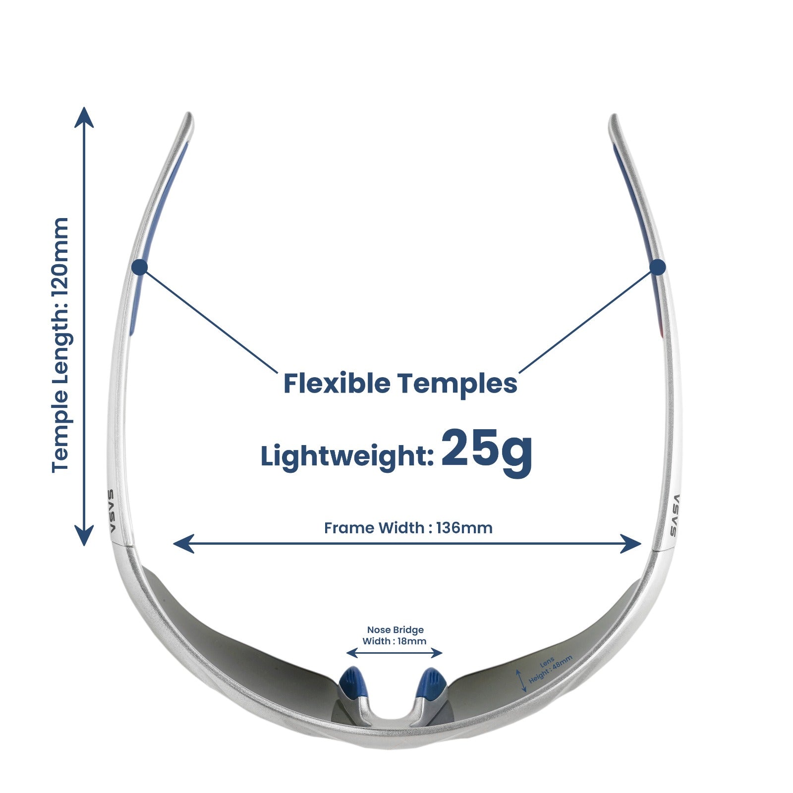 SASA Matte Silver Frame Red Revo Lens Hawkeye Sports Sunglasses