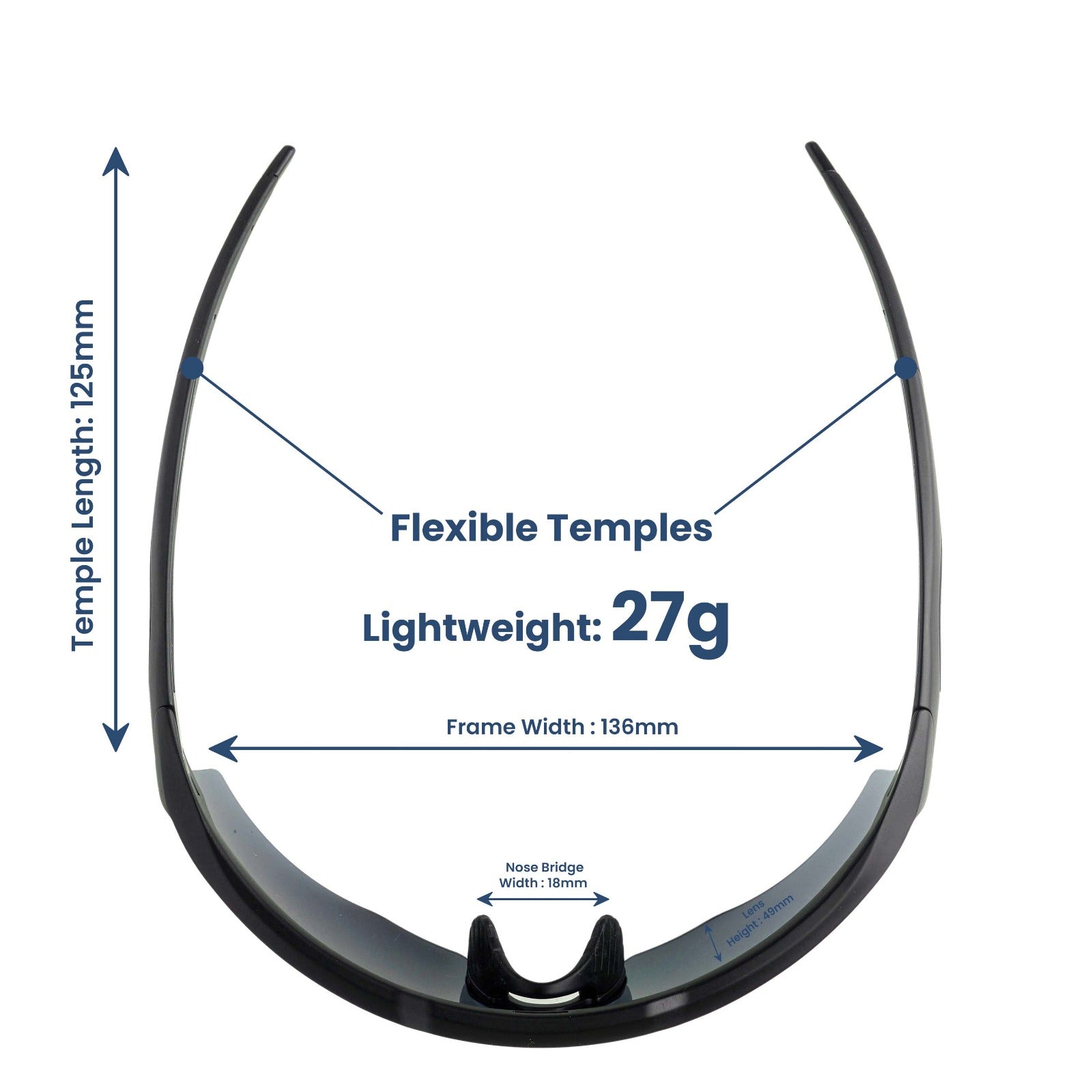 Durable Frame: Made from TR90 material, a lightweight, flexible thermoplastic (plastic titanium).